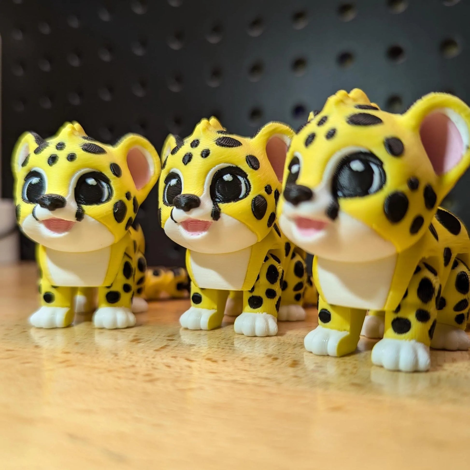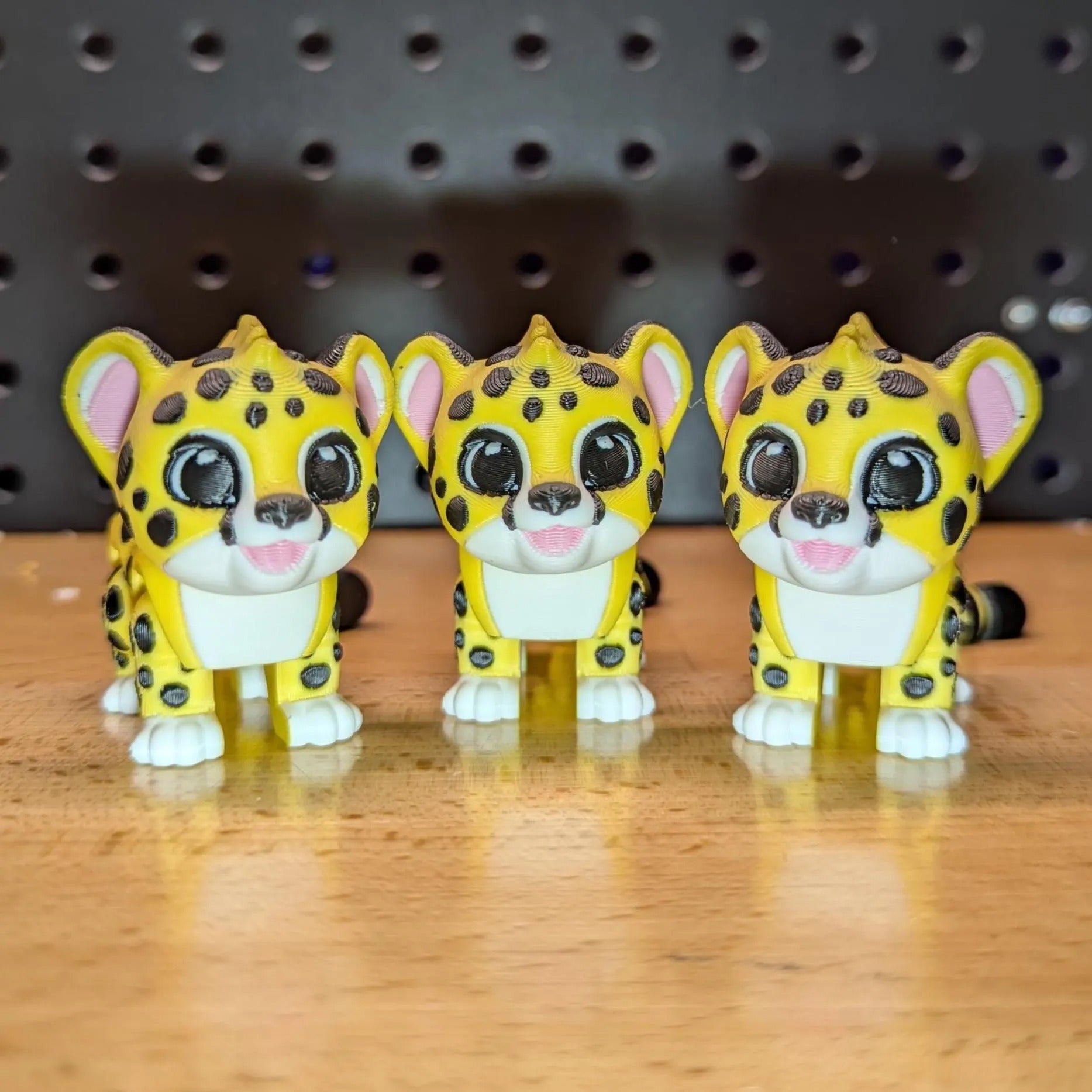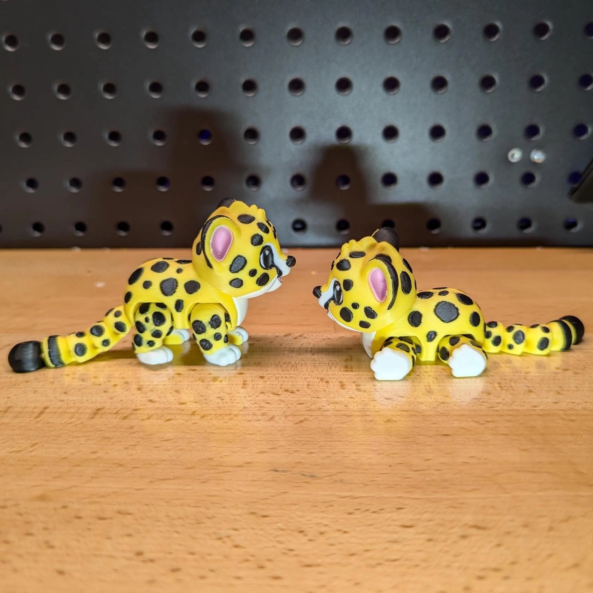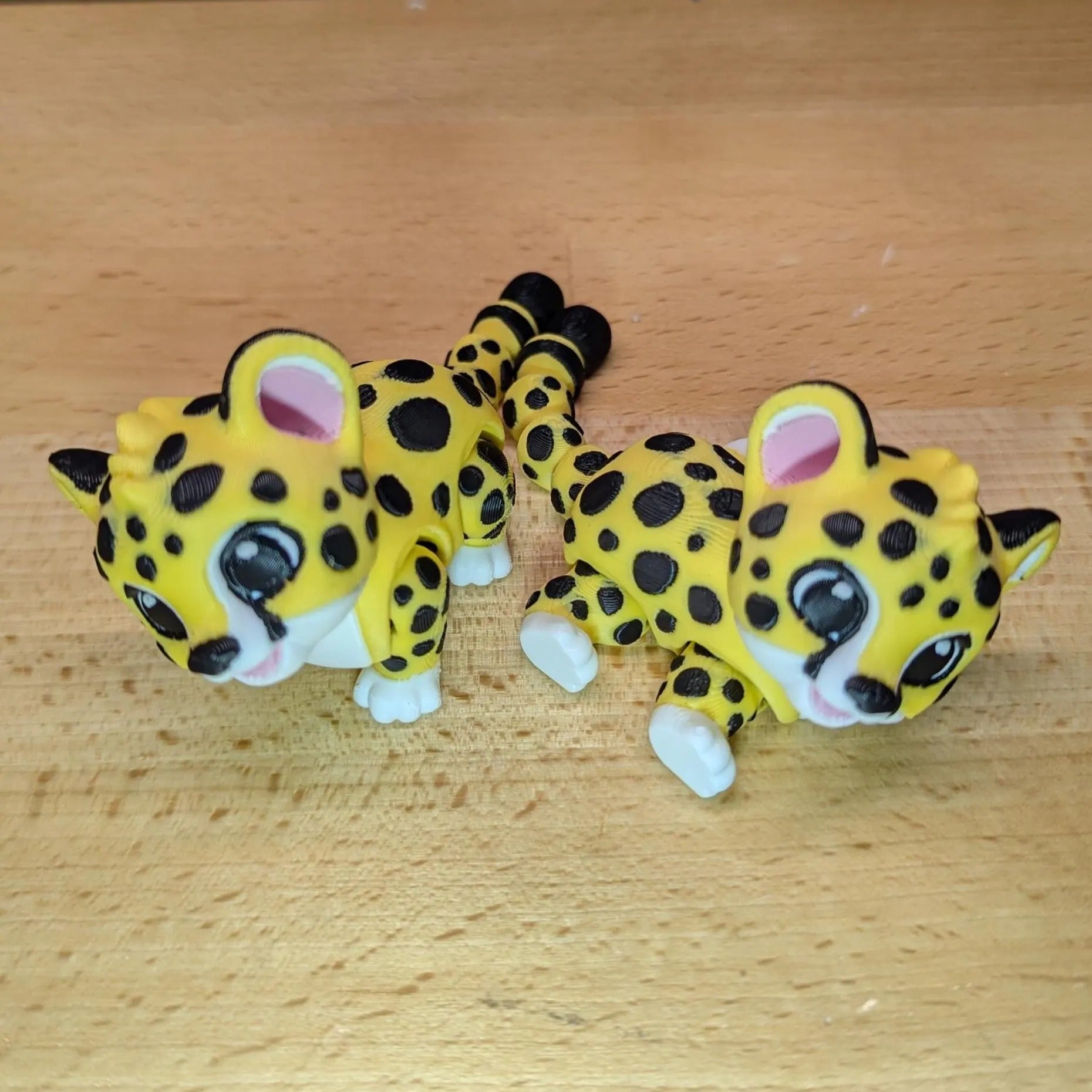 Bring the wild to life with this articulating 3D printed Leopard cub! This adorable model is designed with fully movable joints, allowing it to pose naturally—whether it's stretching, playing, or crouching in a stealthy stance. Whether it's lounging on a desk or sitting proudly on a shelf, this lovable leopard cub is sure to bring a smile to your face.