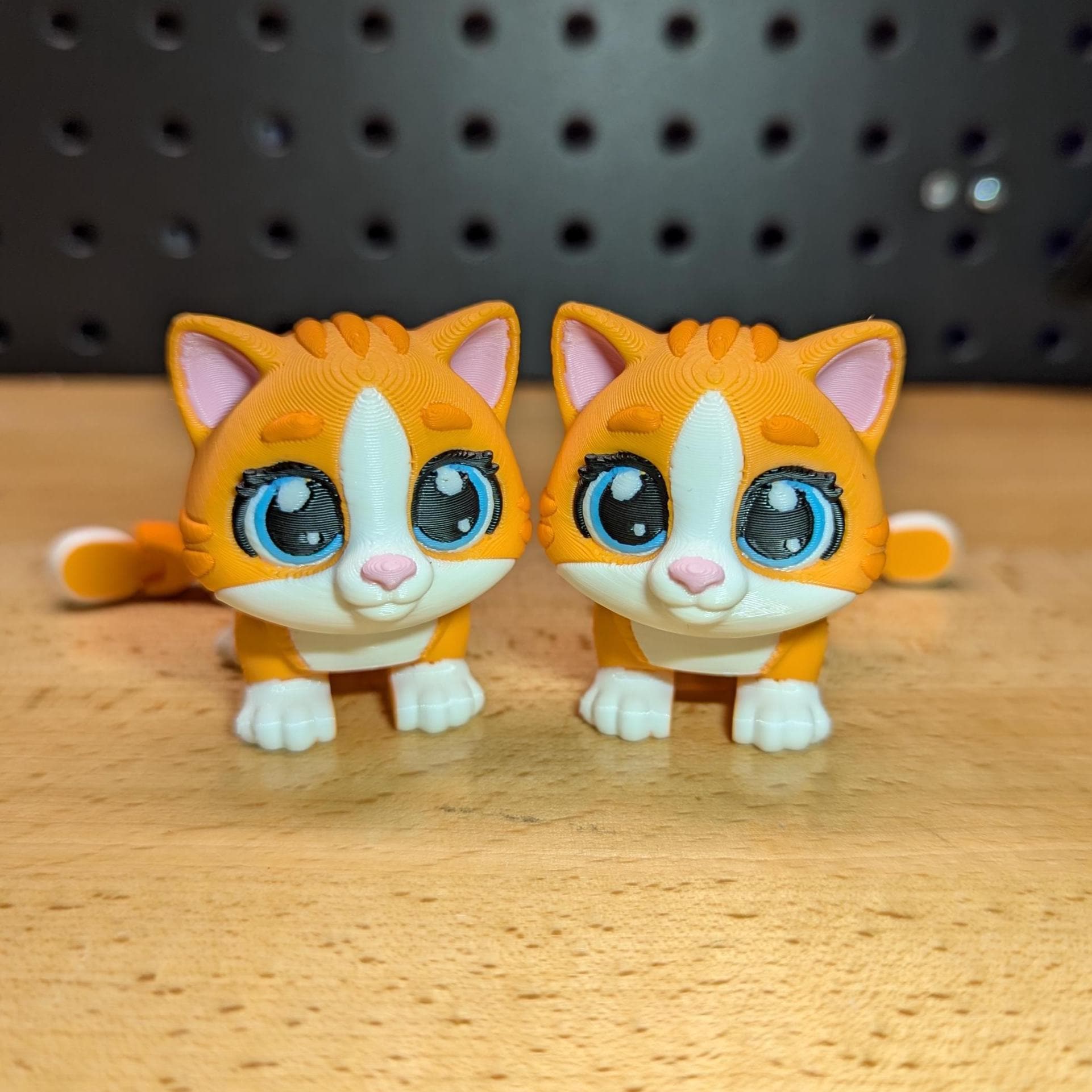 This beautifully crafted 3D-printed Orange cat combines cute and playfulness in a fully articulating design! Perfect for cat lovers and unique decor enthusiasts, this charming model is a delightful addition to any collection. Its smooth articulation allows for a variety of poses, making it not only a decorative piece but also a fun, interactive item.