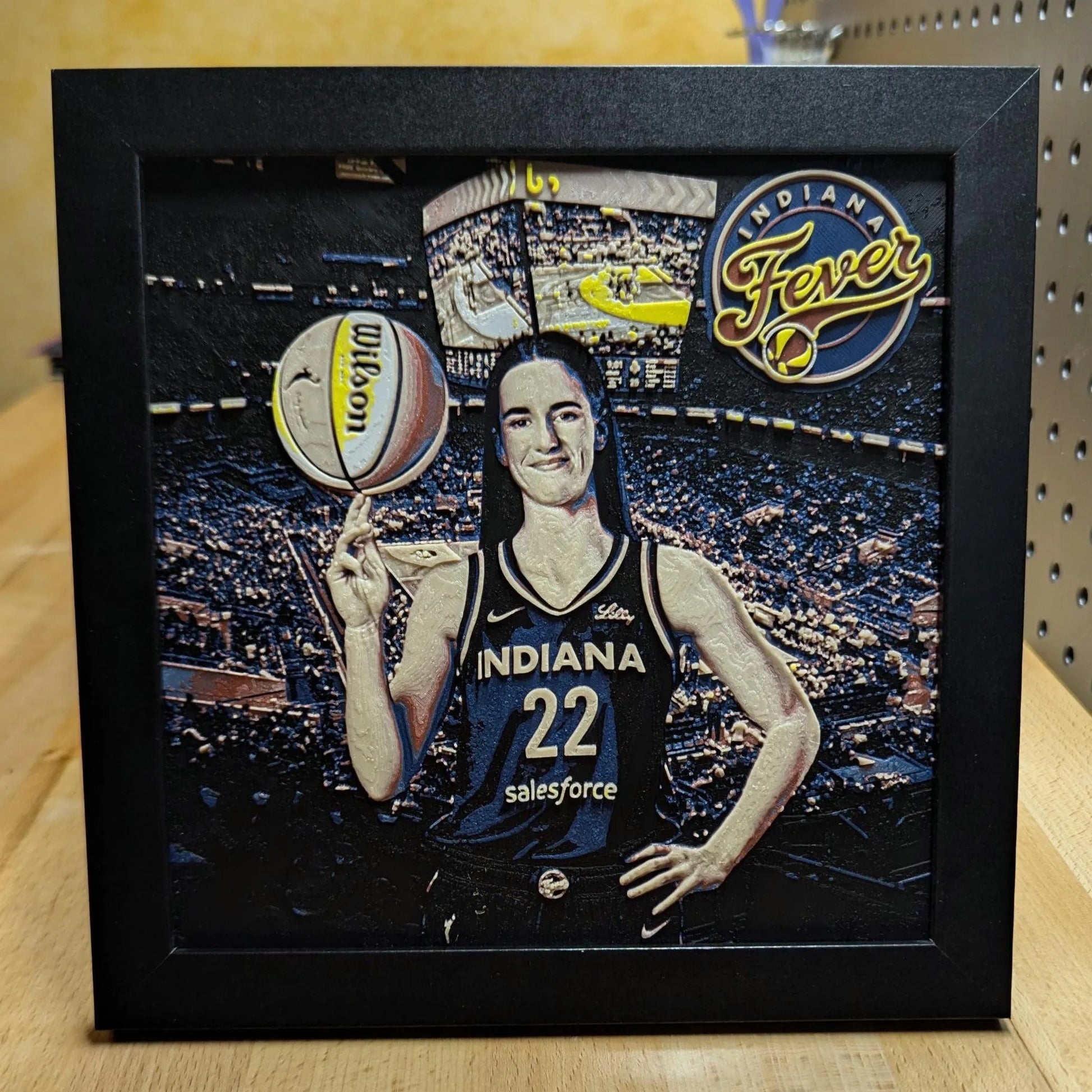 Capture the intensity and talent of basketball star Caitlin Clark with this dynamic 3D printed image, featuring her standing strong with the arena behind her. Perfect for sports fans and those who admire Caitlin’s skill and dedication, this piece brings the energy of the game to your space, showcasing her iconic presence with a powerful backdrop. The detailed design highlights both Caitlin’s focus and the excitement of the arena, making it a must-have for any fan.
