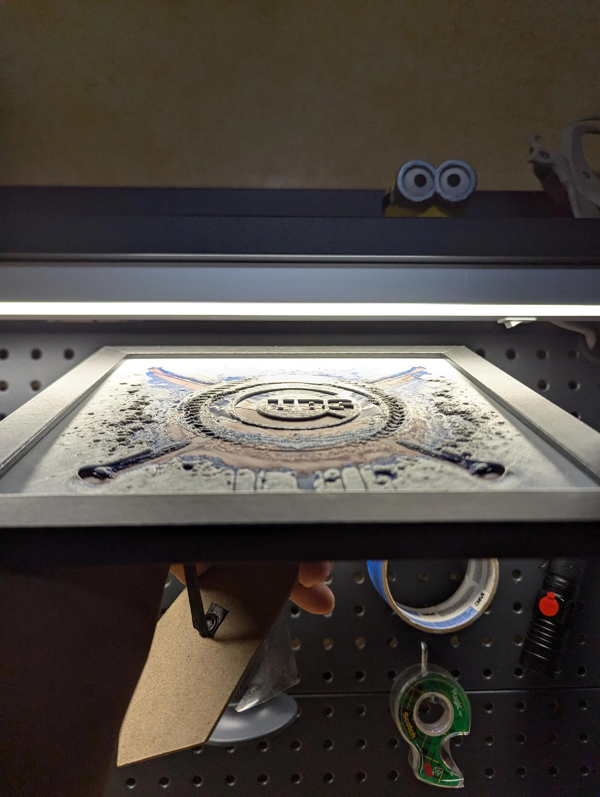 3D printed image of a baseball with crossed bats and the Chicago Cubs logo