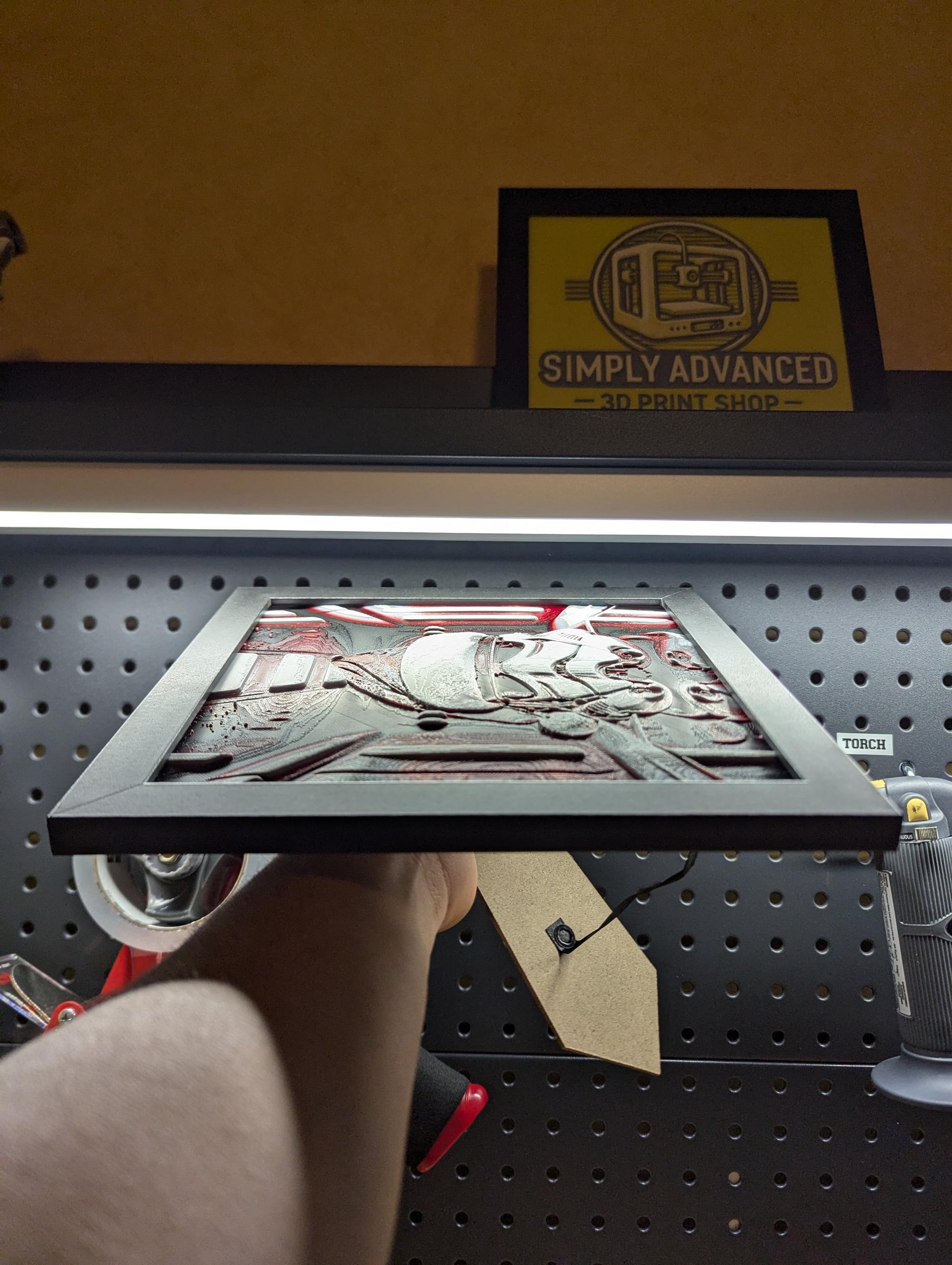Bring a festive twist to the galaxy far, far away with this whimsical 3D printed image of a Stormtrooper wearing a Santa hat. Perfect for Star Wars fans and holiday enthusiasts, this piece combines the iconic look of a Stormtrooper with the cheerful spirit of the season. The detailed design adds a playful and unique touch, making it a standout addition to your holiday decor.