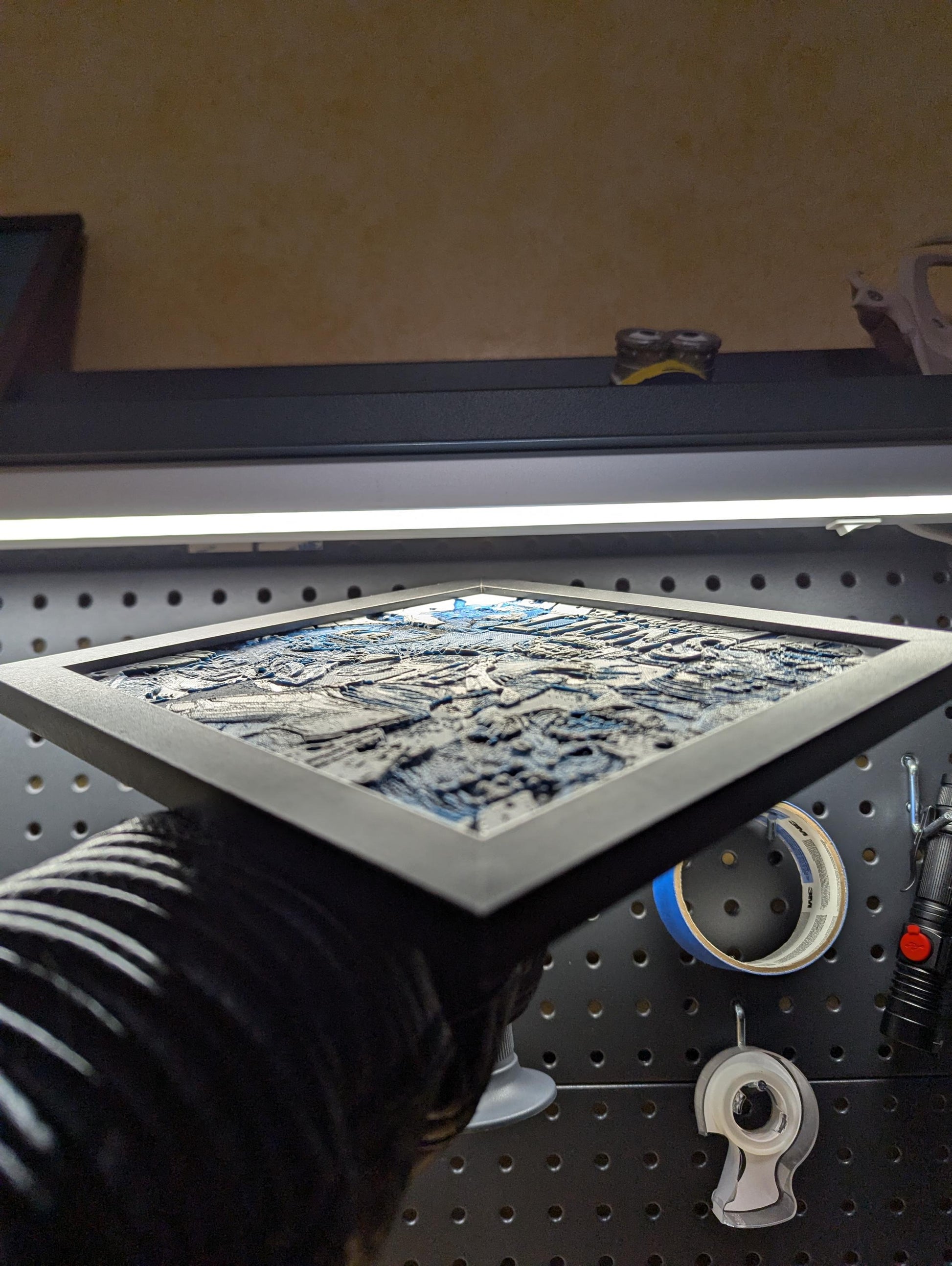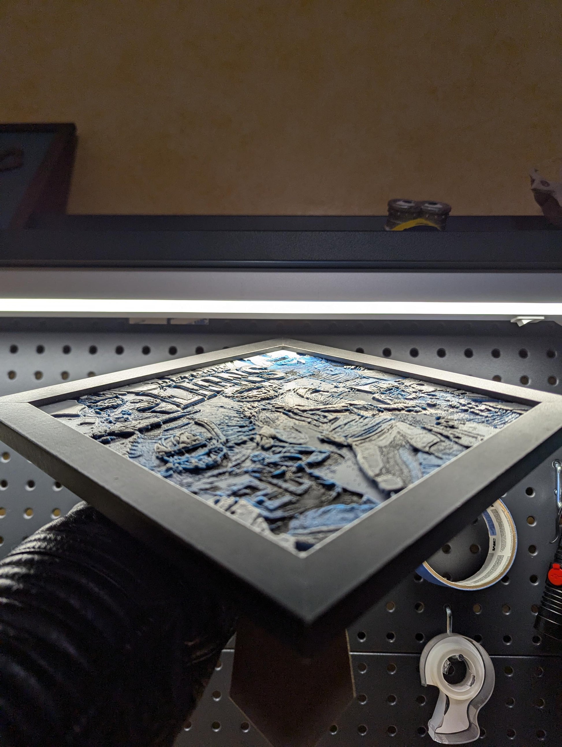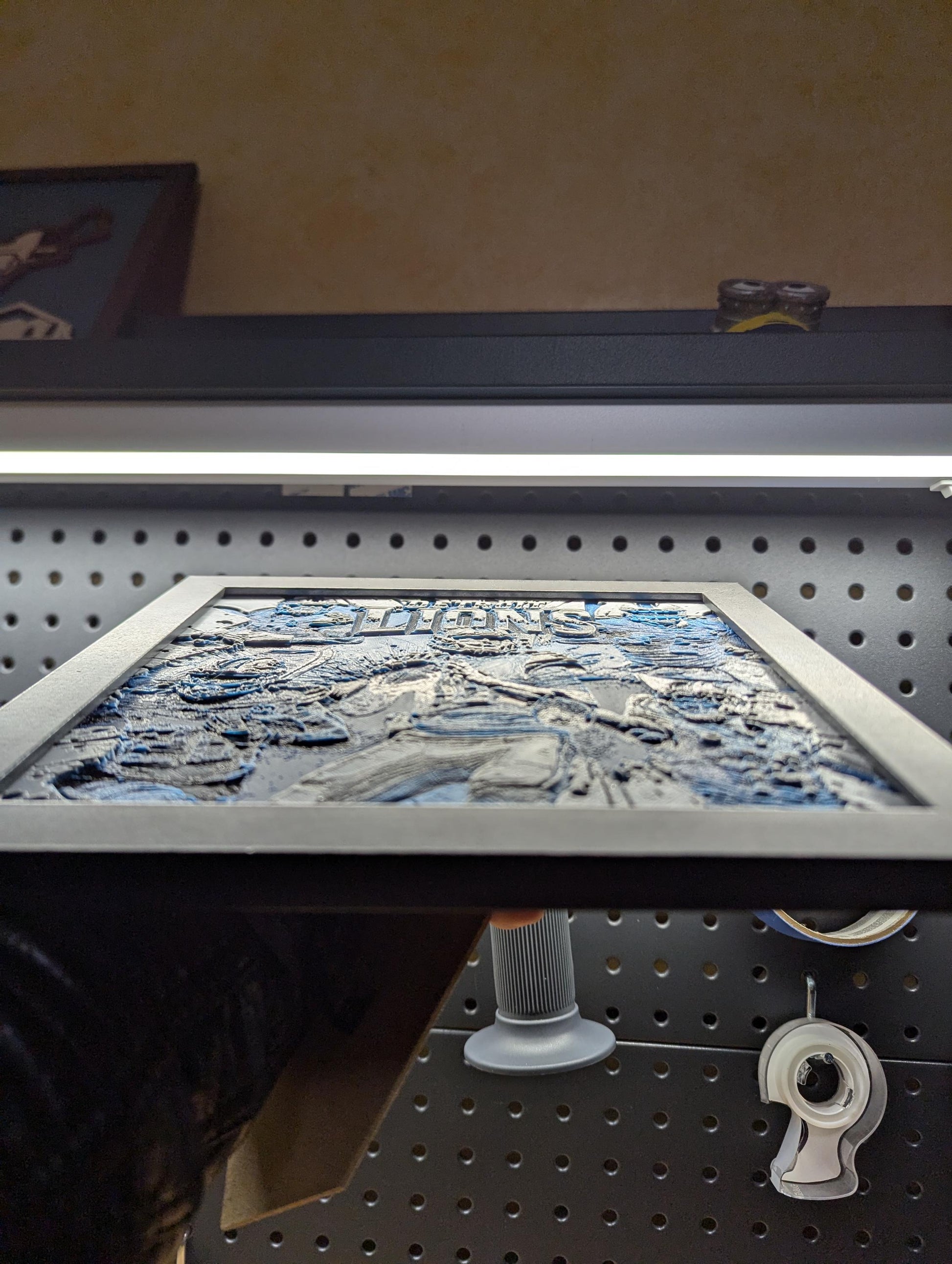 3D printed image of the Detroit Lions logo with paint splatter effect