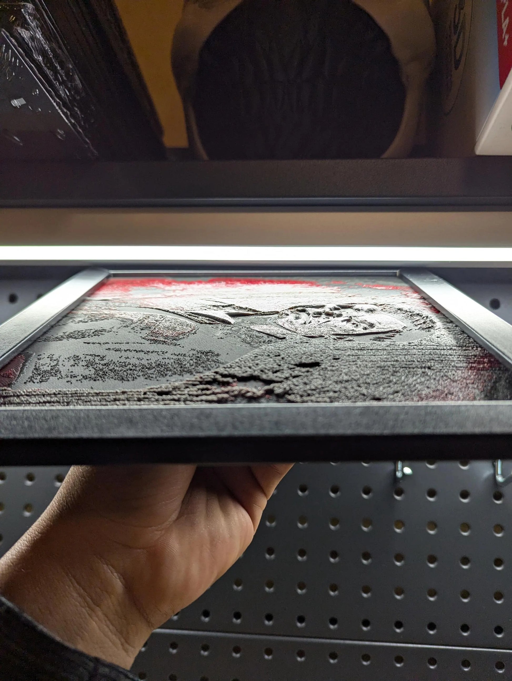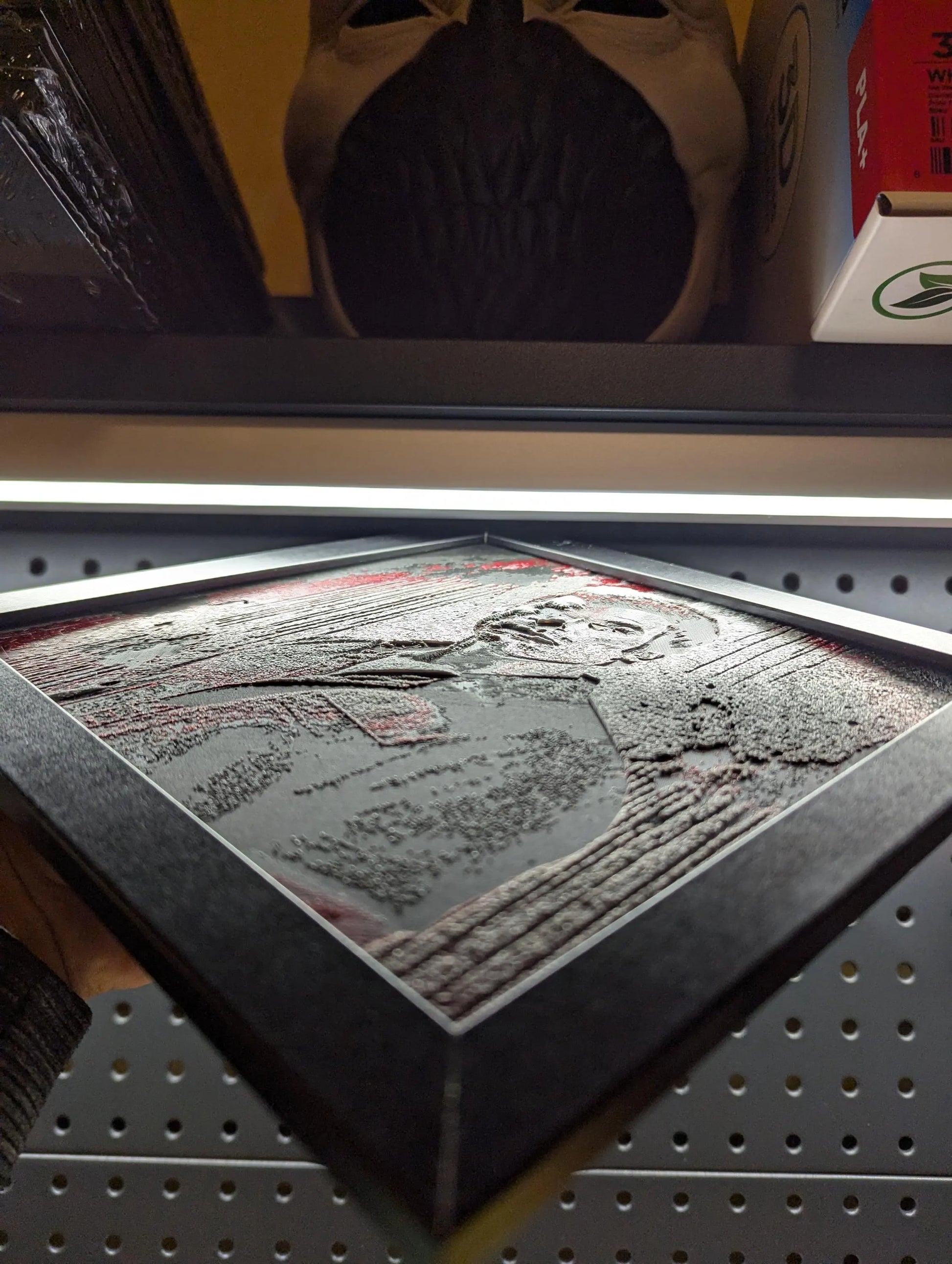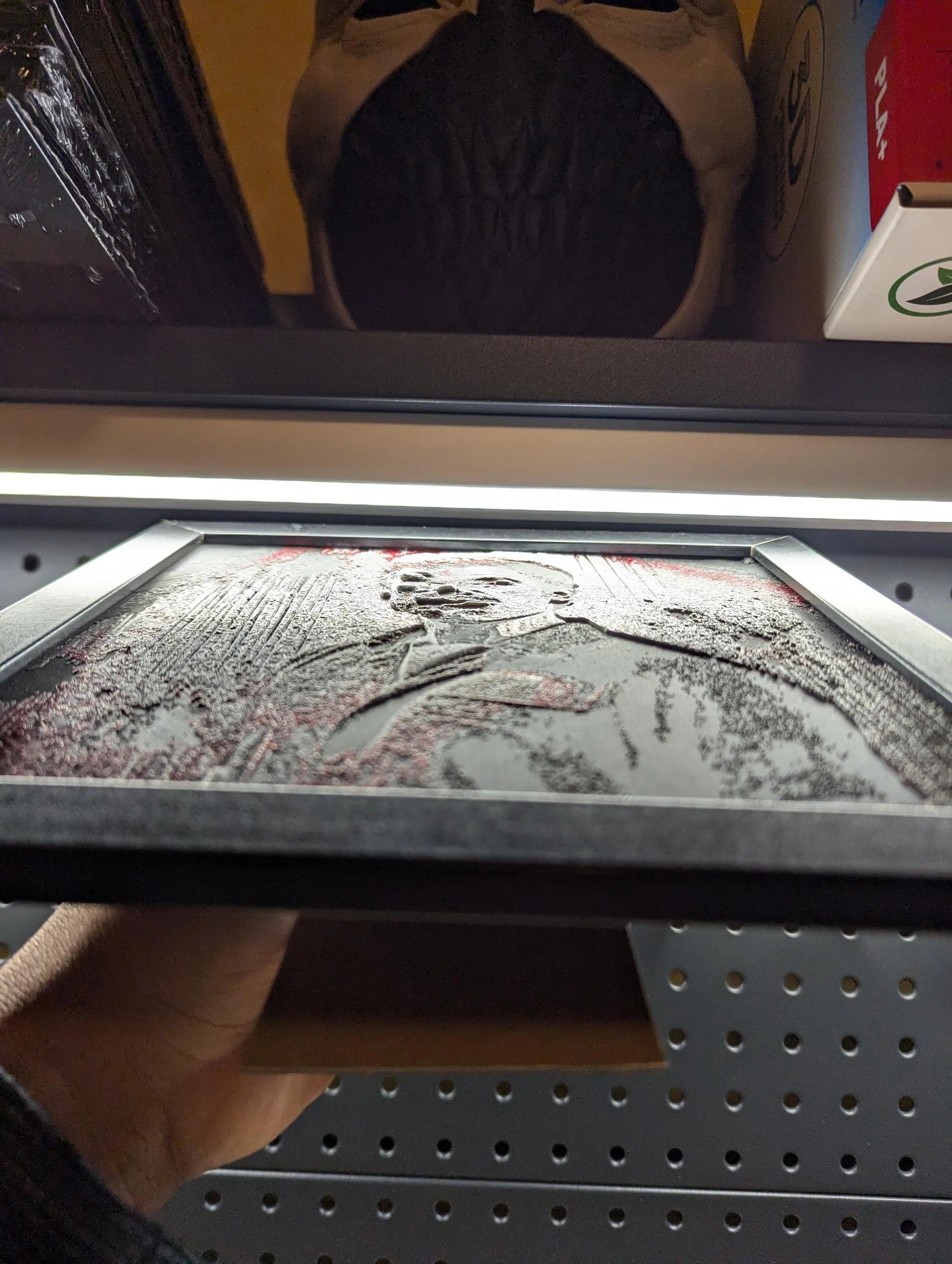 Immerse yourself in the world of Dexter with this meticulously crafted 3D printed image of Dexter Morgan. Perfect for any fan of the iconic TV series, this piece captures the enigmatic essence of the beloved character. The image is printed from high-quality PLA filament, ensuring durability and a sleek, polished finish. It is housed in a free lightweight frame, making it easy to display and move around.