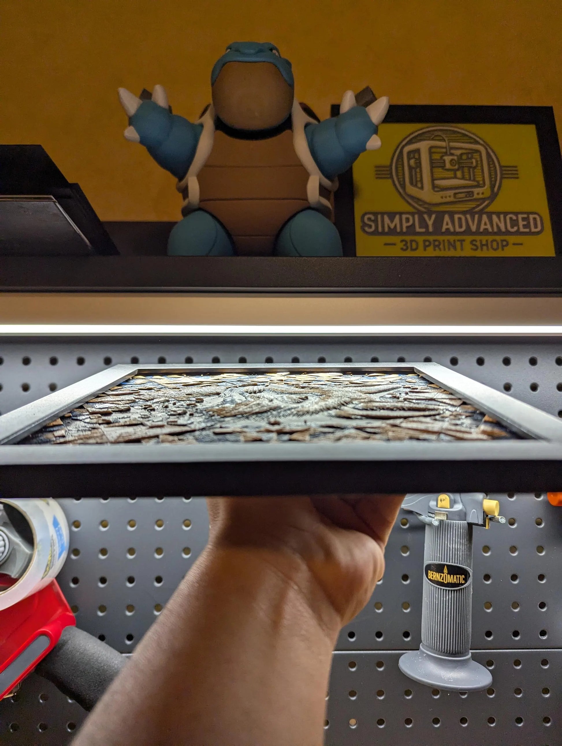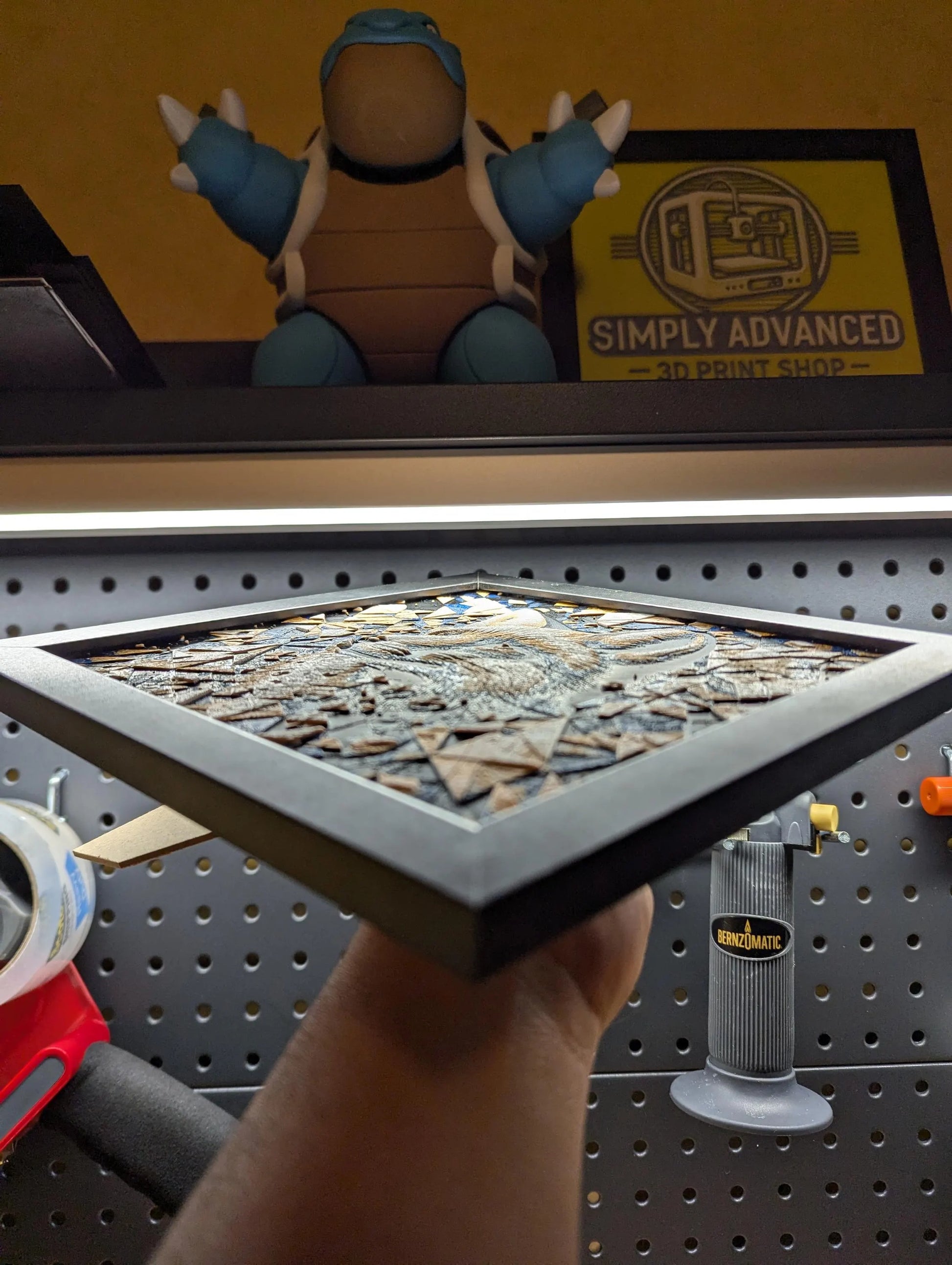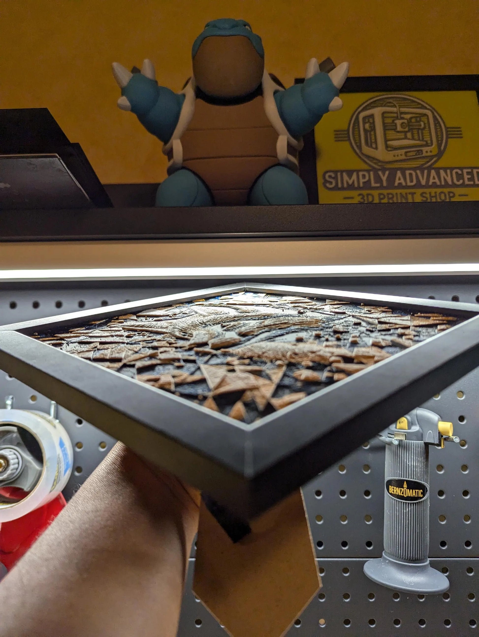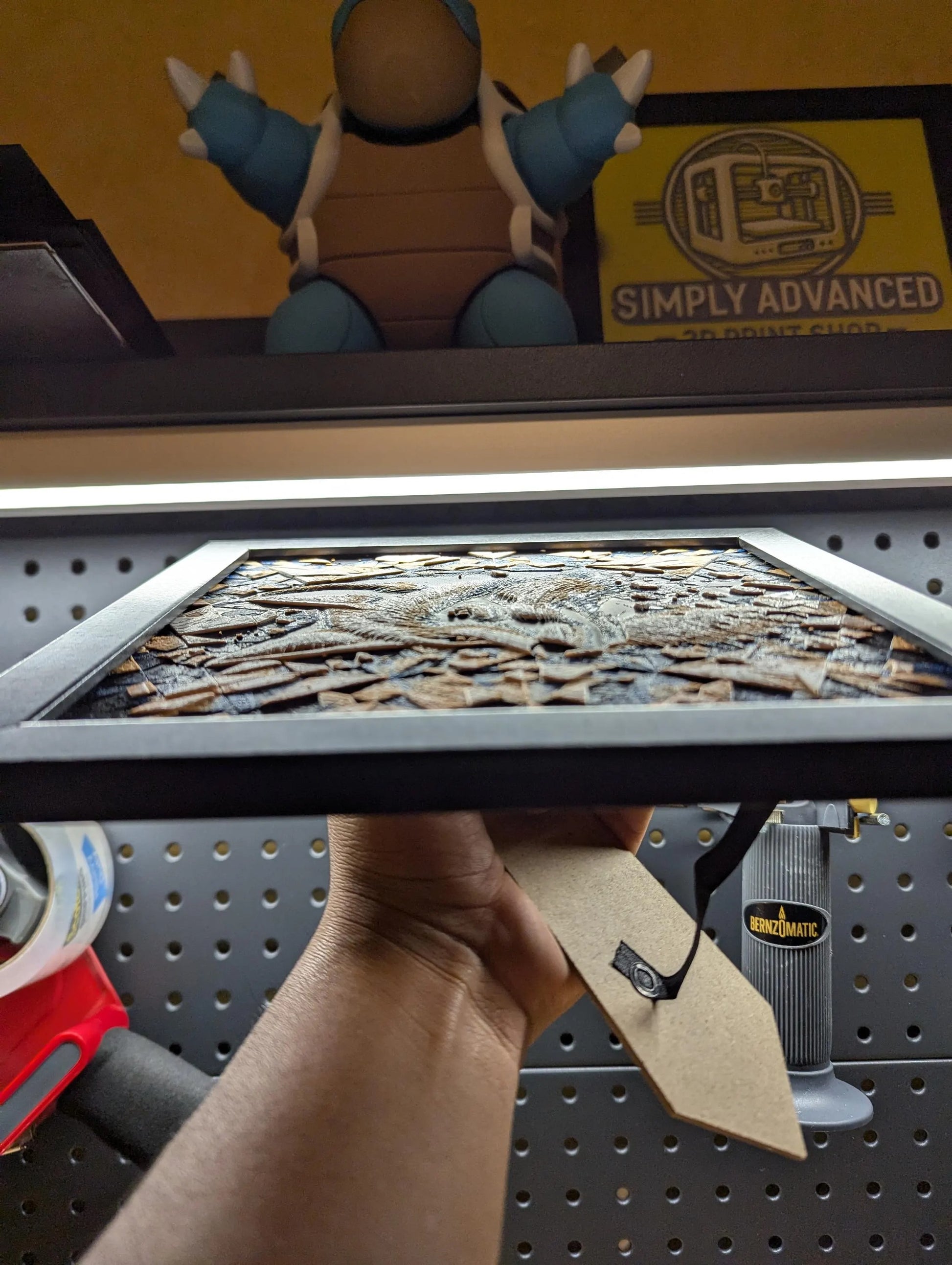 Enhance your space with this striking 3D printed image featuring a fox at the center, surrounded by a cool, artistic pattern. Perfect for nature lovers and those who enjoy modern design, this piece combines the natural beauty of a fox with a contemporary, captivating background, making it a unique and stylish addition to any decor. The intricate design adds a blend of elegance and wild spirit, perfect for creating a focal point in any room.