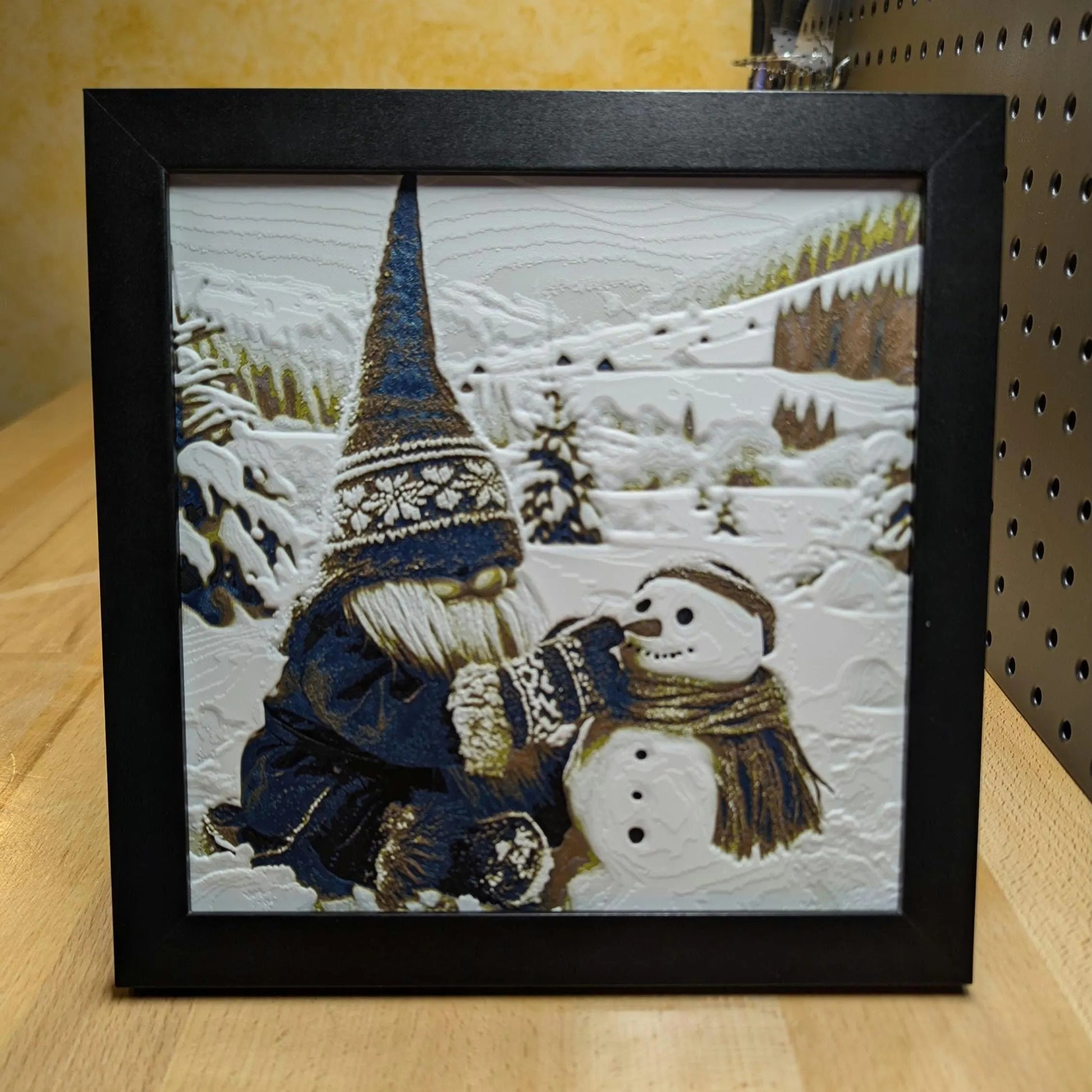 Add a touch of winter whimsy to your decor with this delightful 3D printed image of a gnome seated next to a snowman, sharing a moment of friendship. Perfect for the holiday season or anyone who loves charming and playful art, this piece captures the warmth of camaraderie in the snowy chill. The detailed design brings these two characters to life, making it a joyful and heartwarming addition to any space.