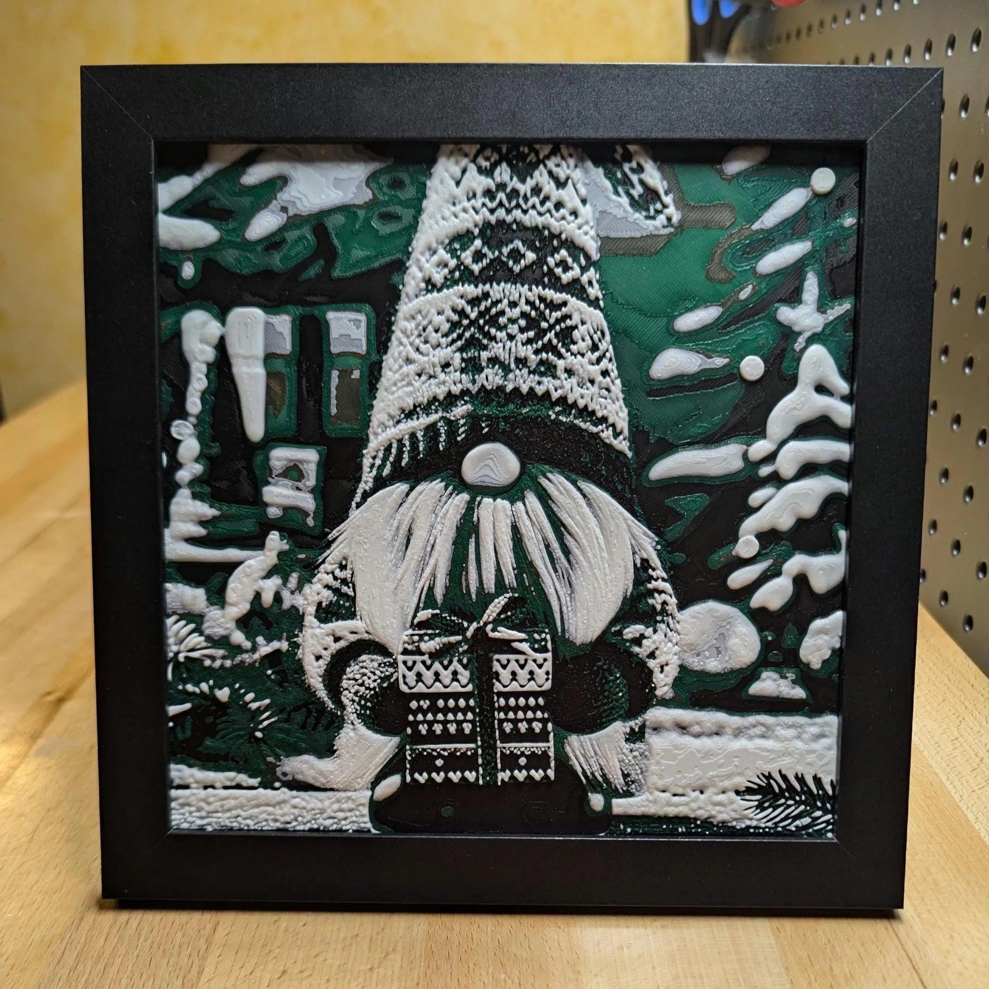 Add a touch of winter whimsy to your decor with this delightful 3D printed image of a gnome seated next to a snowman, sharing a moment of friendship. Perfect for the holiday season or anyone who loves charming and playful art, this piece captures the warmth of camaraderie in the snowy chill. The detailed design brings these two characters to life, making it a joyful and heartwarming addition to any space.