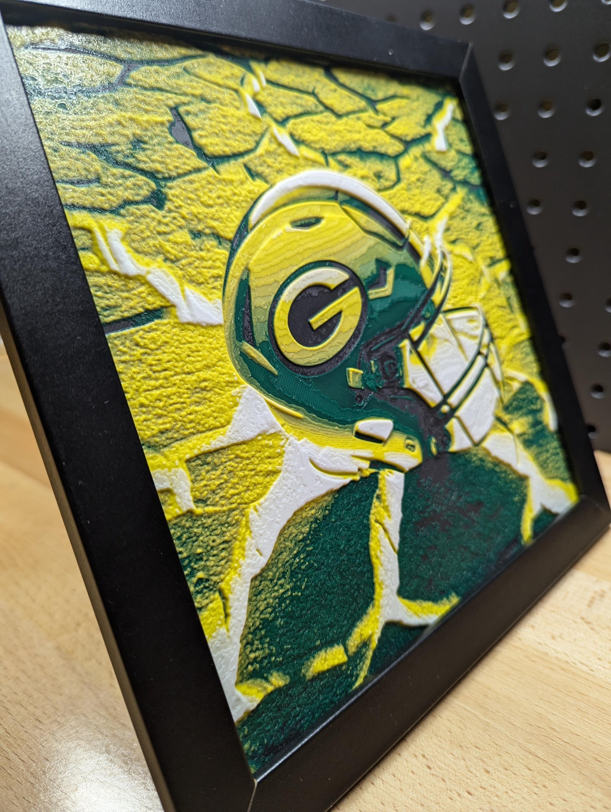 Capture the resilience and strength of the Green Bay Packers with this powerful 3D printed image of a Packers helmet resting on top of crumbling ground. Perfect for devoted Packers fans, this piece symbolizes the team’s determination to rise above challenges, even when the foundation is breaking apart. The dramatic design adds a bold and dynamic touch to any space.