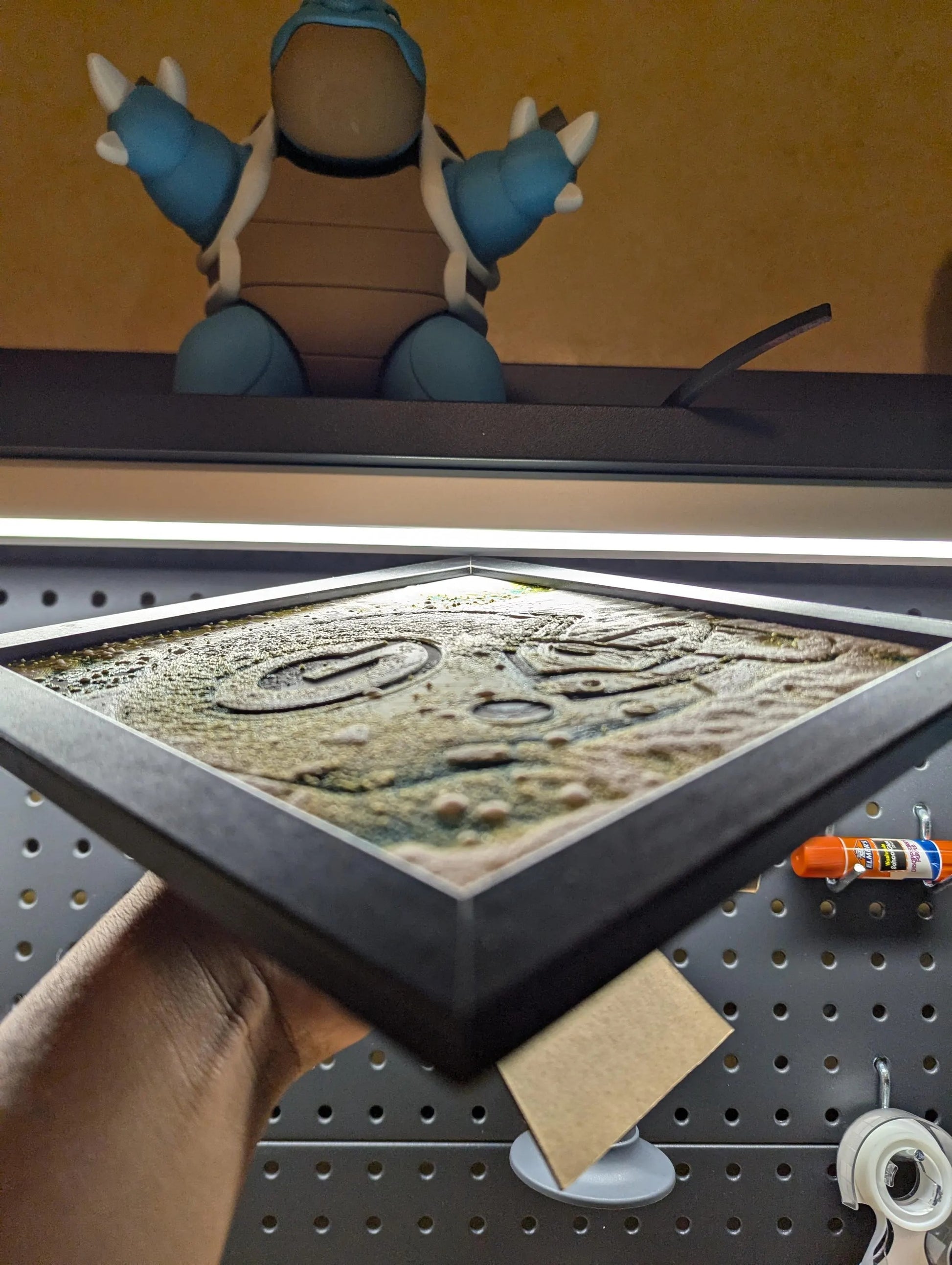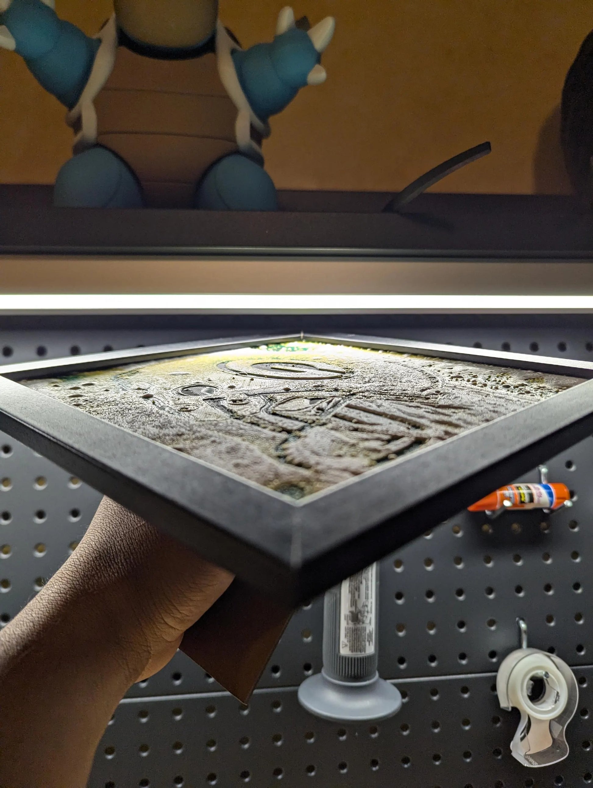 3D printed image of a Green Bay Packers helmet surrounded by snow