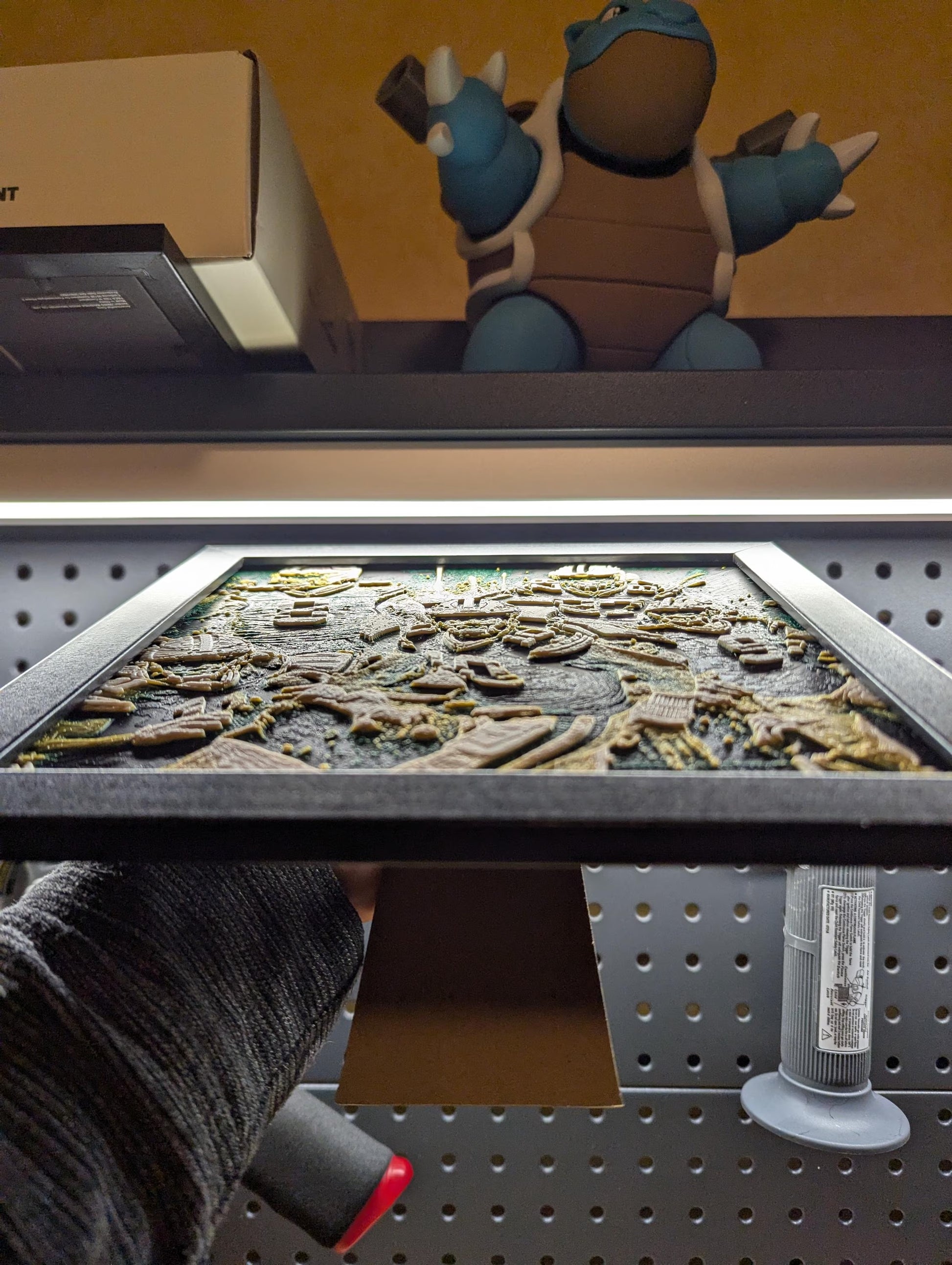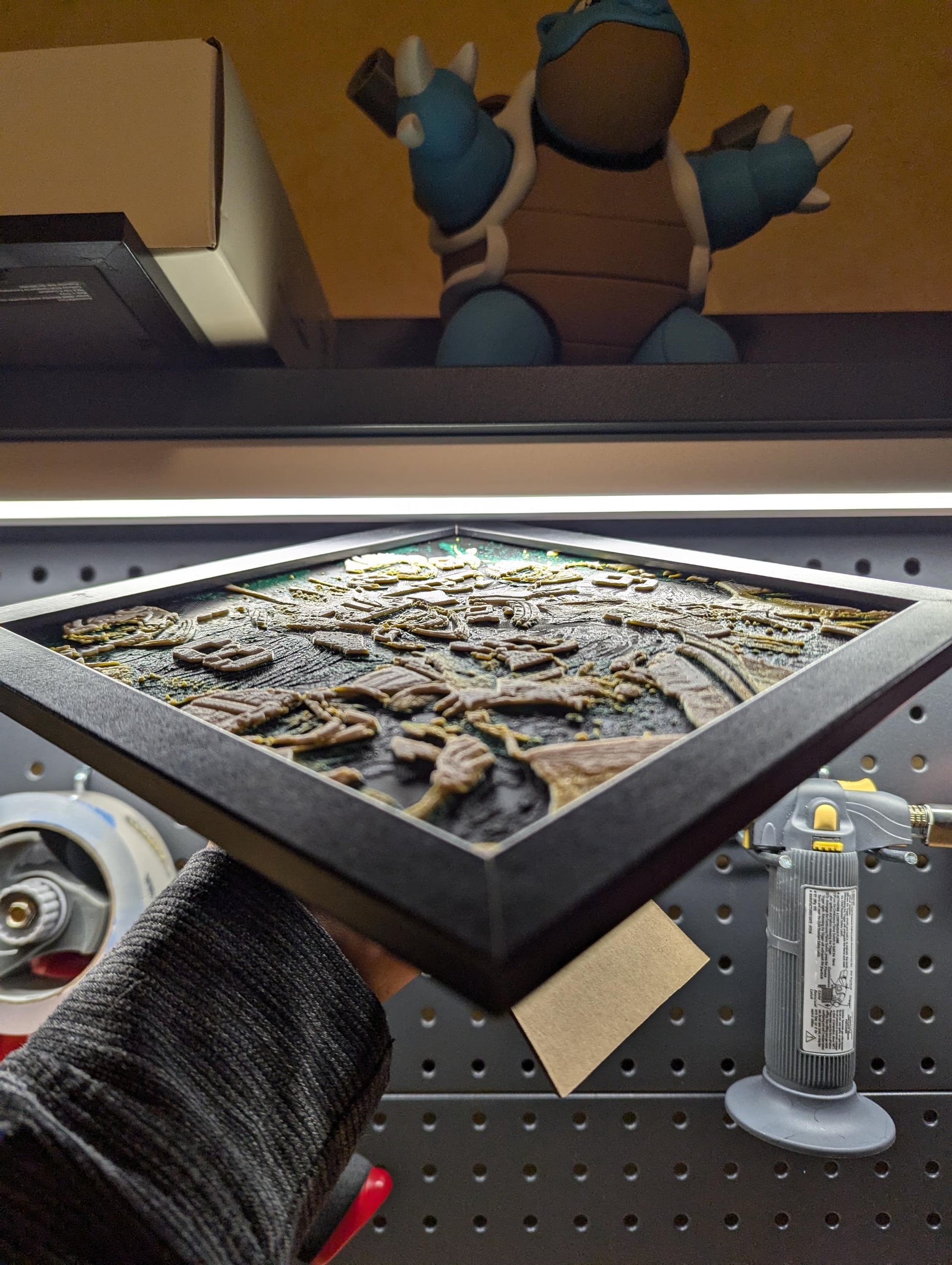 The image is printed from high-quality PLA filament, ensuring durability and a sleek, polished finish. It is housed in a free lightweight frame, making it easy to display and move around.