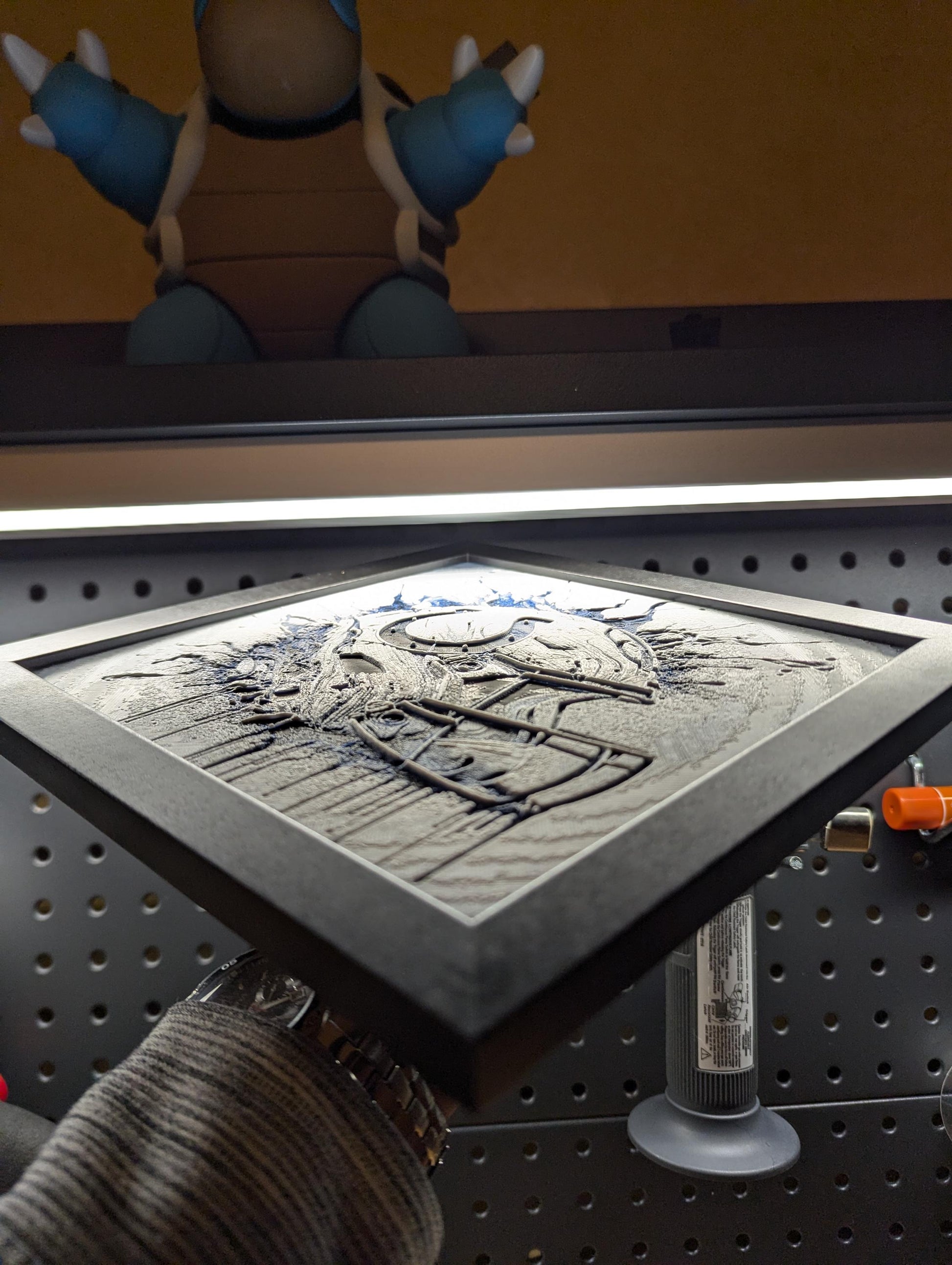 3D printed image of the Indianapolis Colts helmet with a paint splatter effect