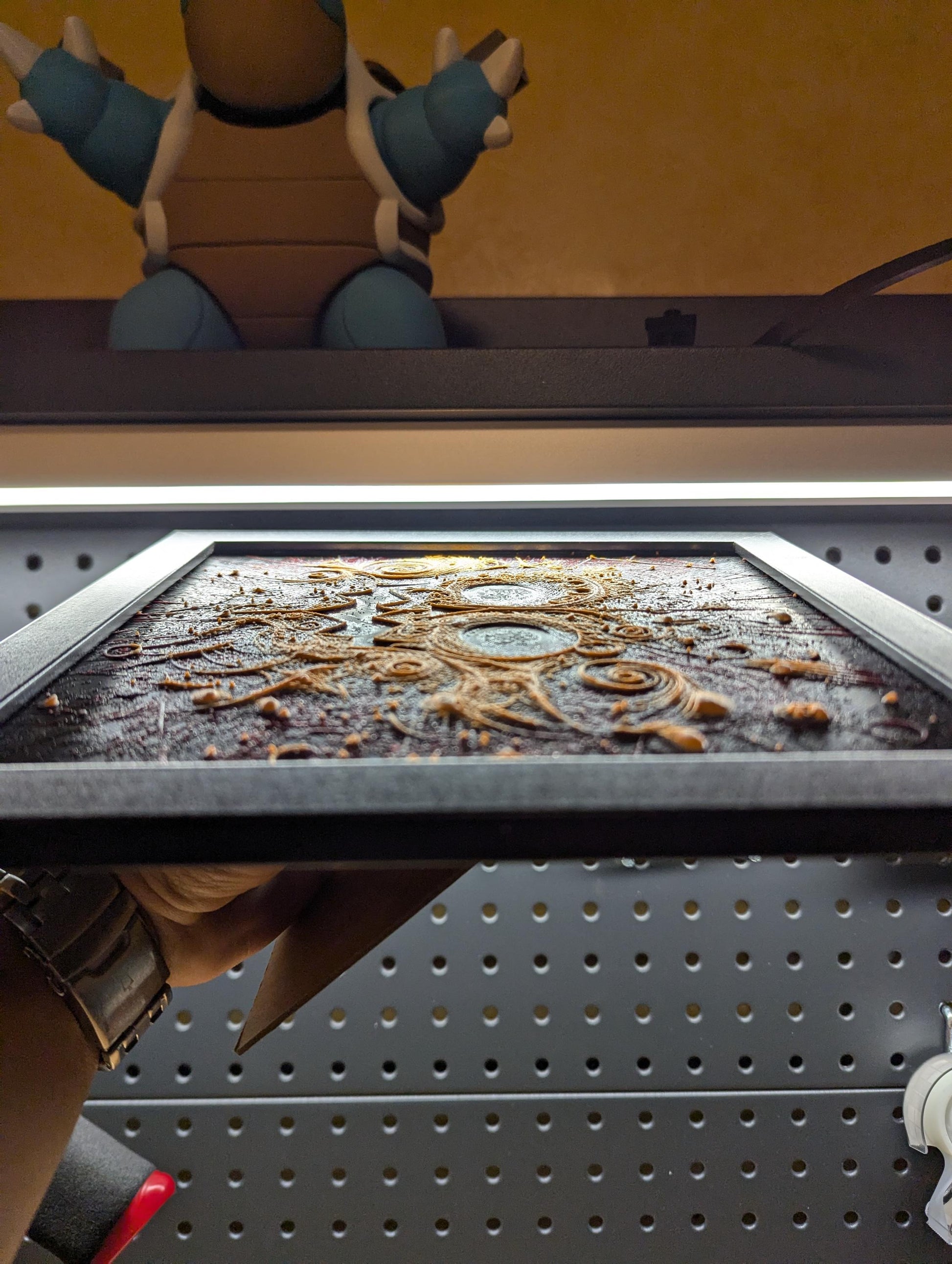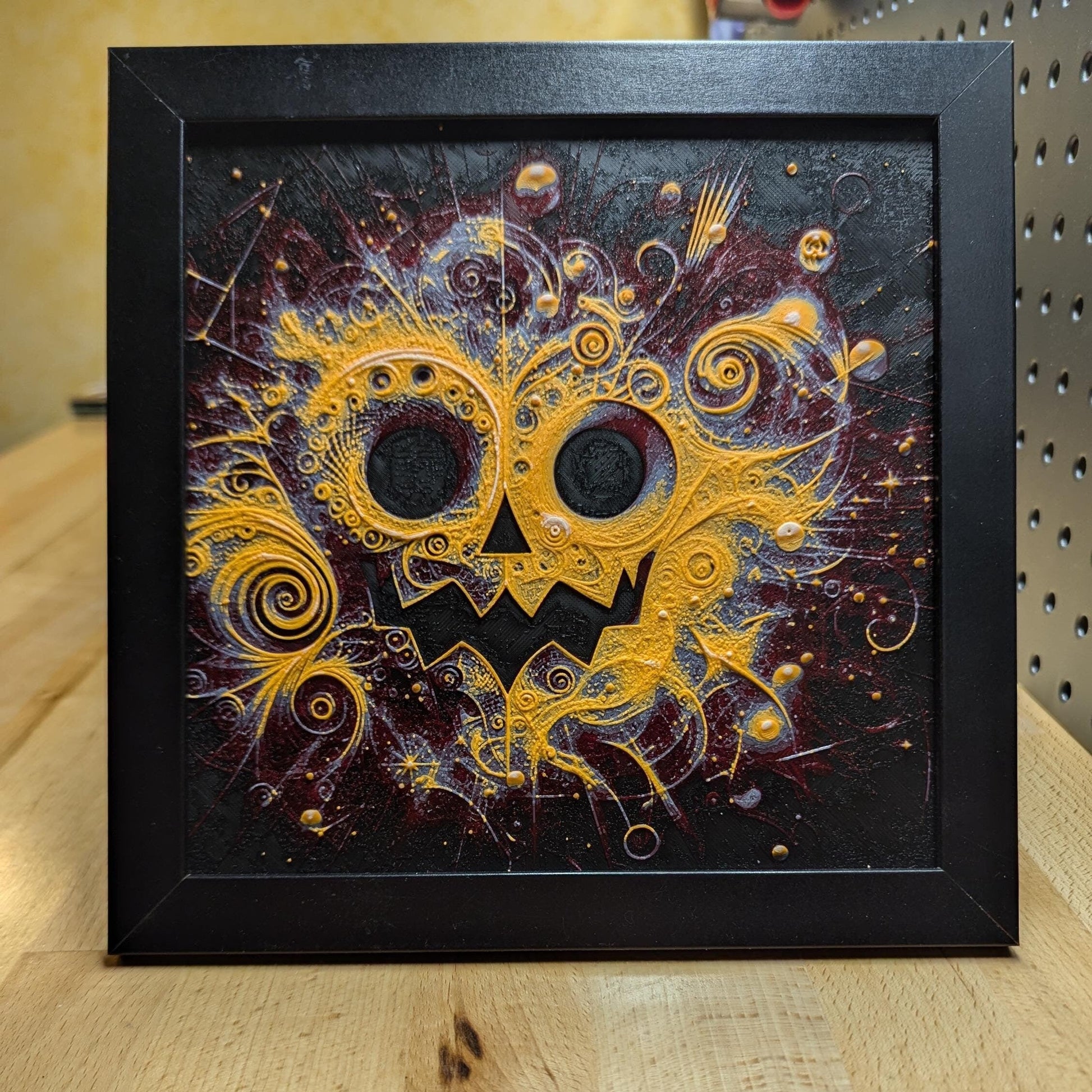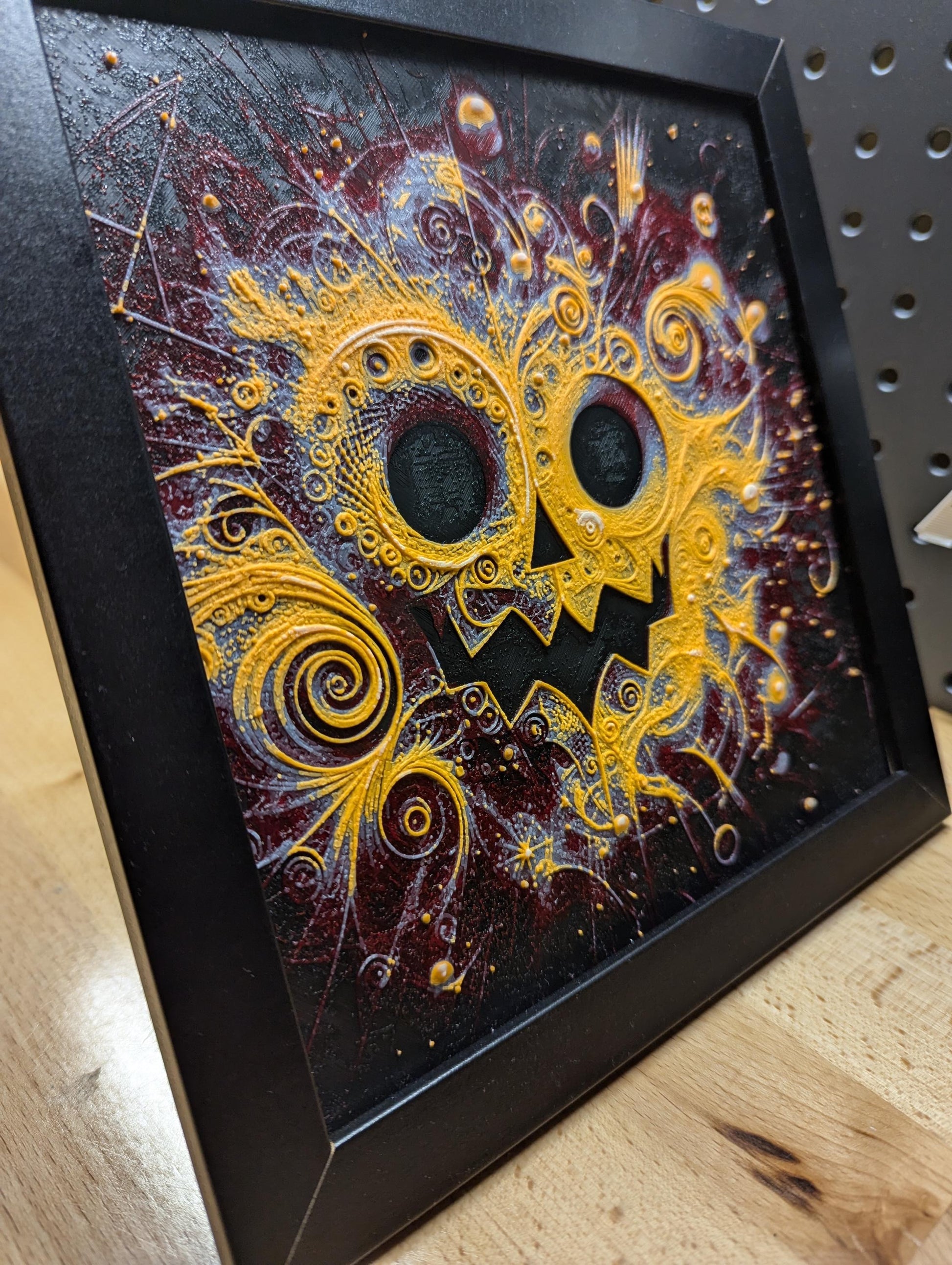 Bring a touch of Halloween spirit into your home with this playful 3D printed pattern that resembles a Jack O' Lantern face. Perfect for lovers of the spooky season, this piece captures the fun and festivity of Halloween with a classic carved pumpkin design that adds a whimsical and seasonal charm to any space.