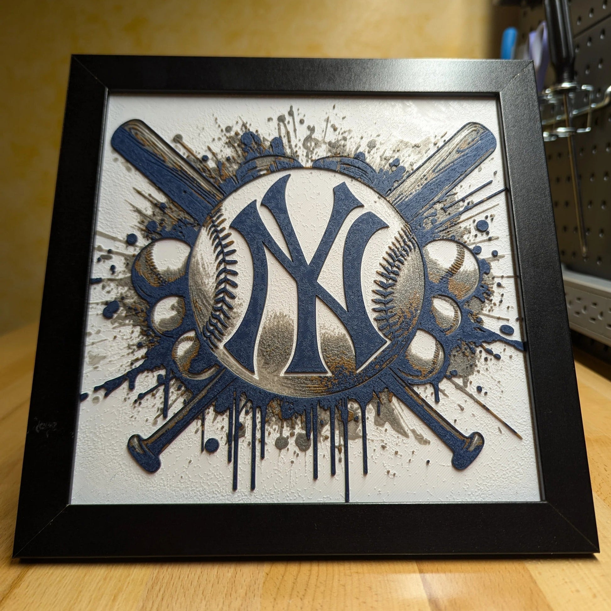 Celebrate your New York Yankees fandom with this meticulously crafted 3D printed logo. Perfect for any dedicated fan, this piece captures the spirit of the Yankees and adds a touch of team pride to your space. The logo is printed from high-quality PLA filament, ensuring durability and a sleek, polished finish. It is housed in a free lightweight frame, making it easy to display and move around.