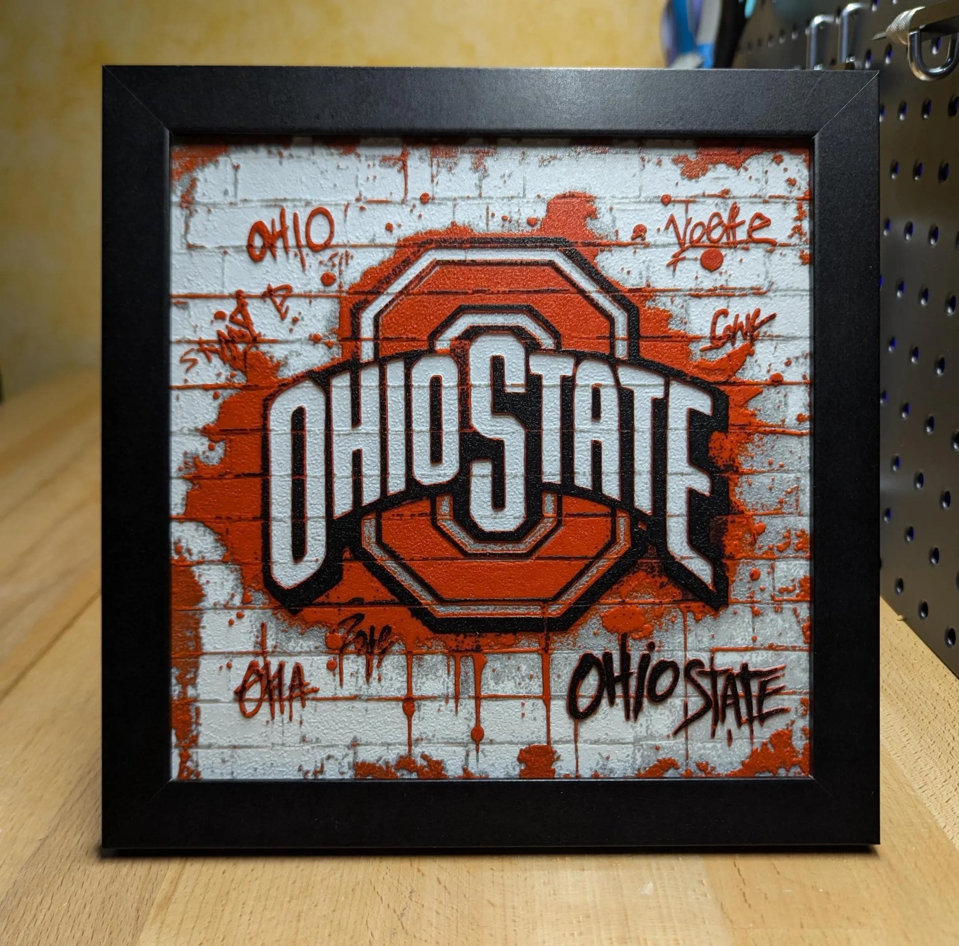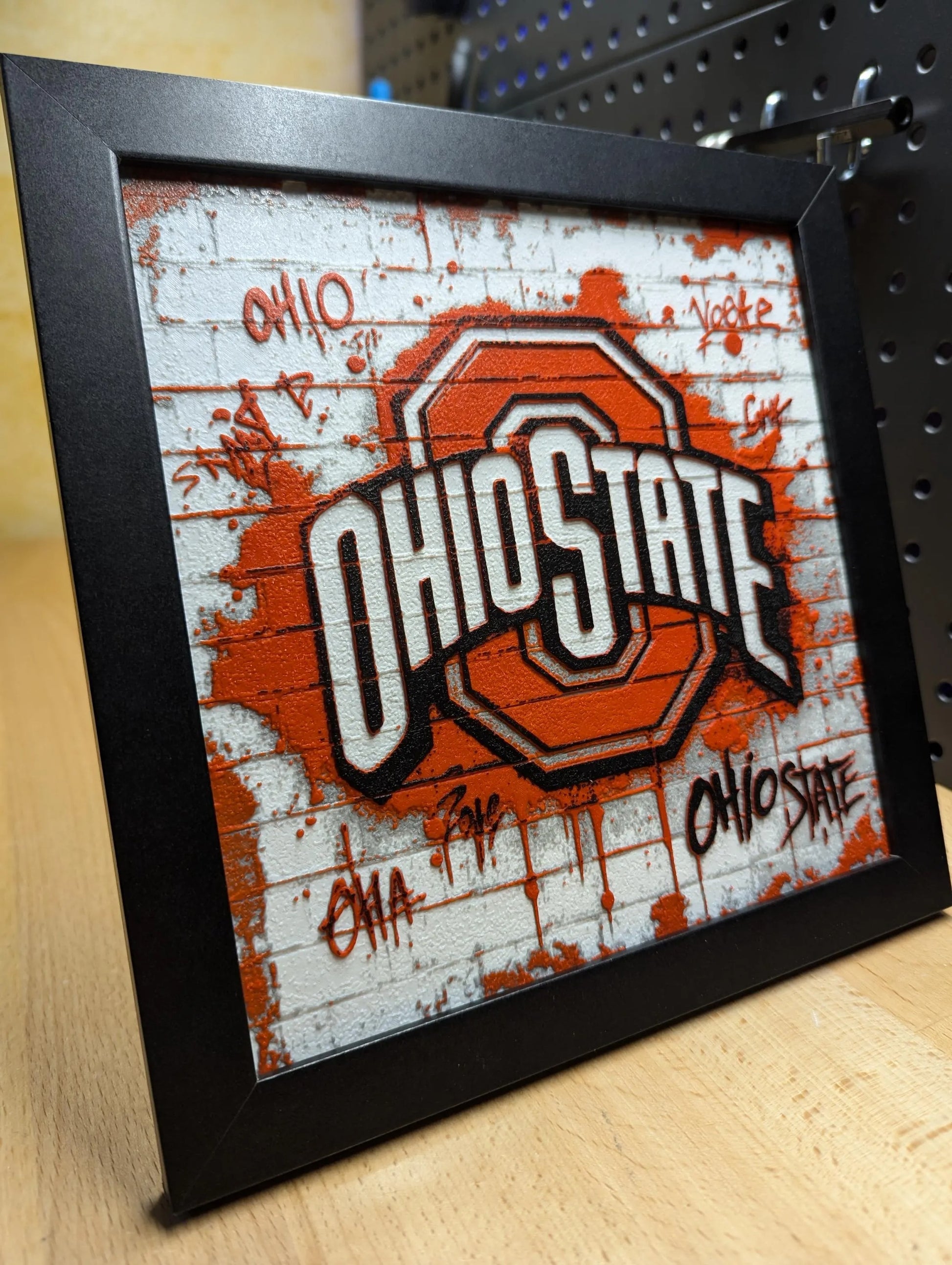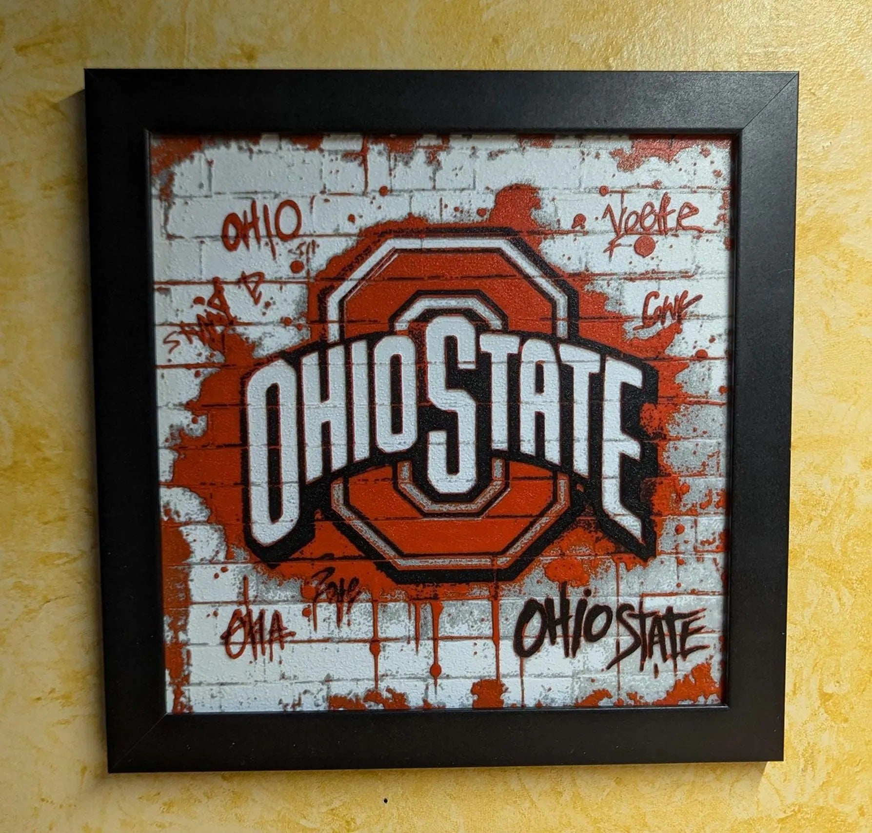 Whether you want to display it on your desk, in your living room, or hang it on the wall, this Ohio State University art is versatile and stylish, making it a perfect addition to your home, office, or game day setup.