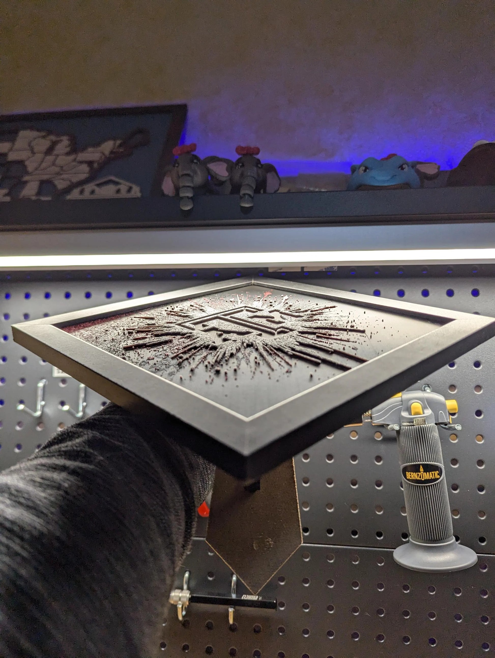 3D printed image of the Texas A&M University logo with paint splatter effect